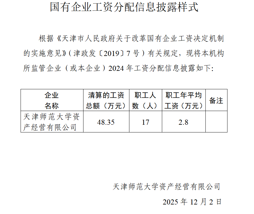 2024年国有企业工资分配信息披露样式